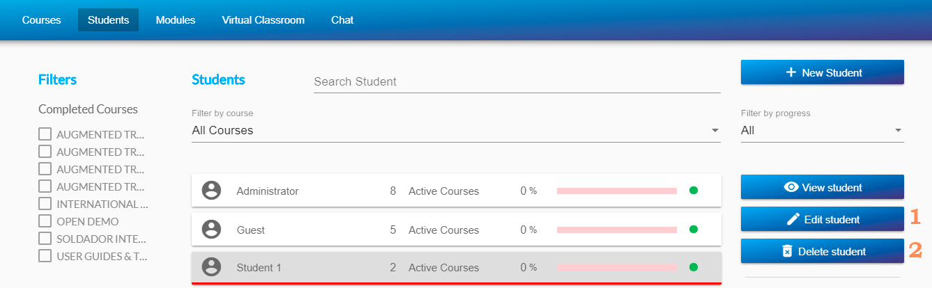 In the students section, go to «View student».