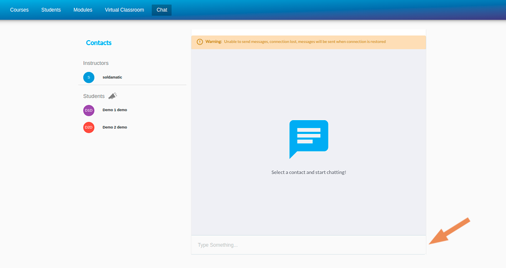 You can select the instructor or partner you want to chat with from the list on the left.